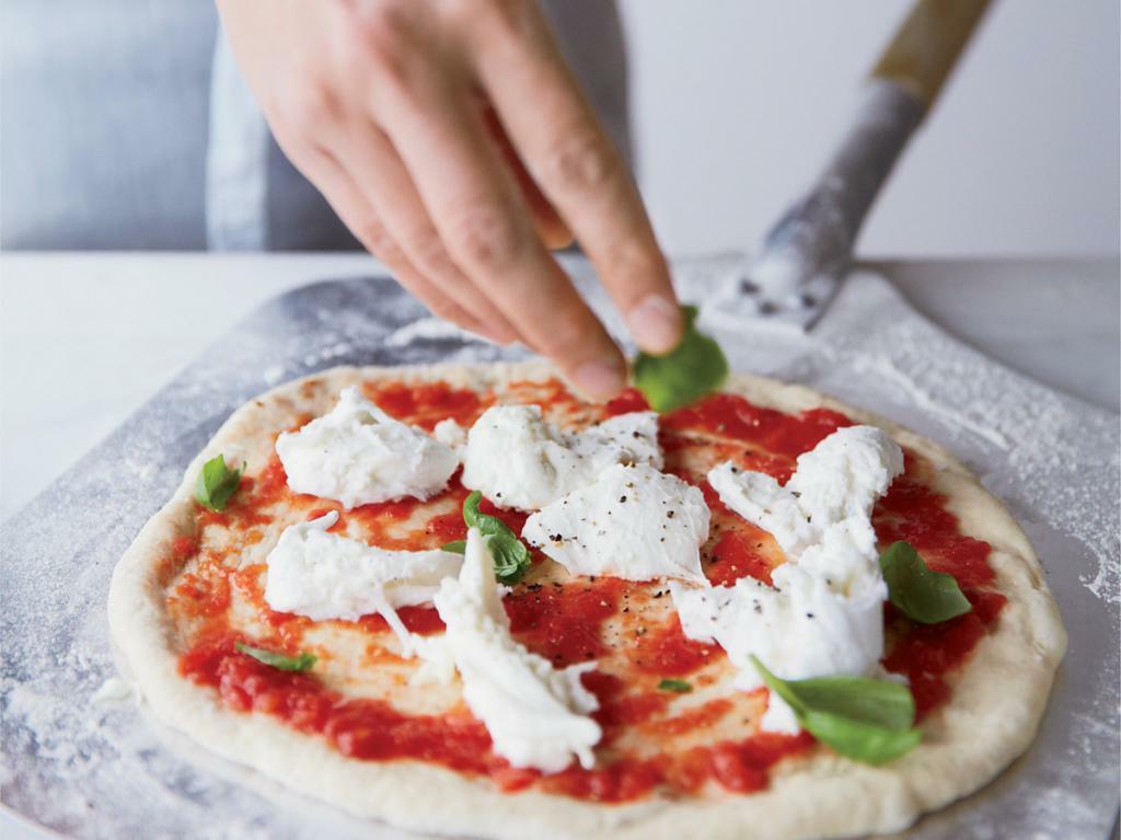 В воду добавим дрожжи и сахар, хорошо перемешаем, накроем чистой салфеткой и поставим в теплое место на 15 мин. Пока подходят дрожжи, соединим муку, соль, оливковое масло. Все хорошо перемешаем. Добавляем в муку дрожжи и еще разок все перемешаем. У нас получилось нетугое тесто. Скатаем шарик, накроем чистой салфеткой и поставим в теплое место на 30 минут.